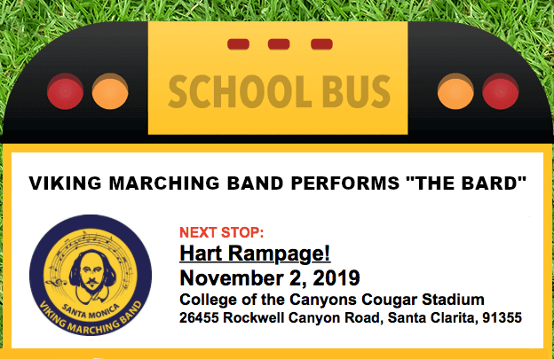 The Viking Marching Band will travel to Santa Clarita for an 8 pm performance time at the Hart Rampage Field Tournament.